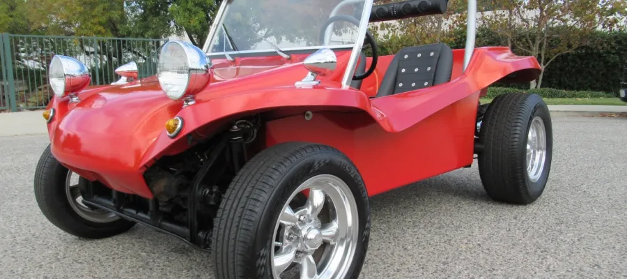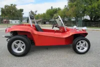 Need a fun little Buggy for the Beach House or Mountain retreat? This one is a head turner with it’s Tangerine Orange Metalflake finish and staggered 15 inch 5 lug Polished American Racing wheels. The Bremen factory body is in great condition and it even comes with a removable Hardtop, dual This car was a labor of love for the previous owner and it has had lots of upgrades and servicing done including new disc brakes, new suspension parts, wiring, clutch and so much more! The 1600 Single Port VW engine runs great and the 4 speed transaxle shifts easily the way it should. The interior has a set of Black custom upholstered sport seats, rubber flooring, 3 Spoke chrome classic sport steering wheel, Silver roll bar with custom mounted EcoXGear Blue Tooth Speaker with LED lighting, dash mounted USB socket for charging your devices, locking glove box, ABS center console with cup holders and a super cool Orange dice shift knob! This is a fun toy and you can’t get much simpler than a VW powered Dune Buggy!