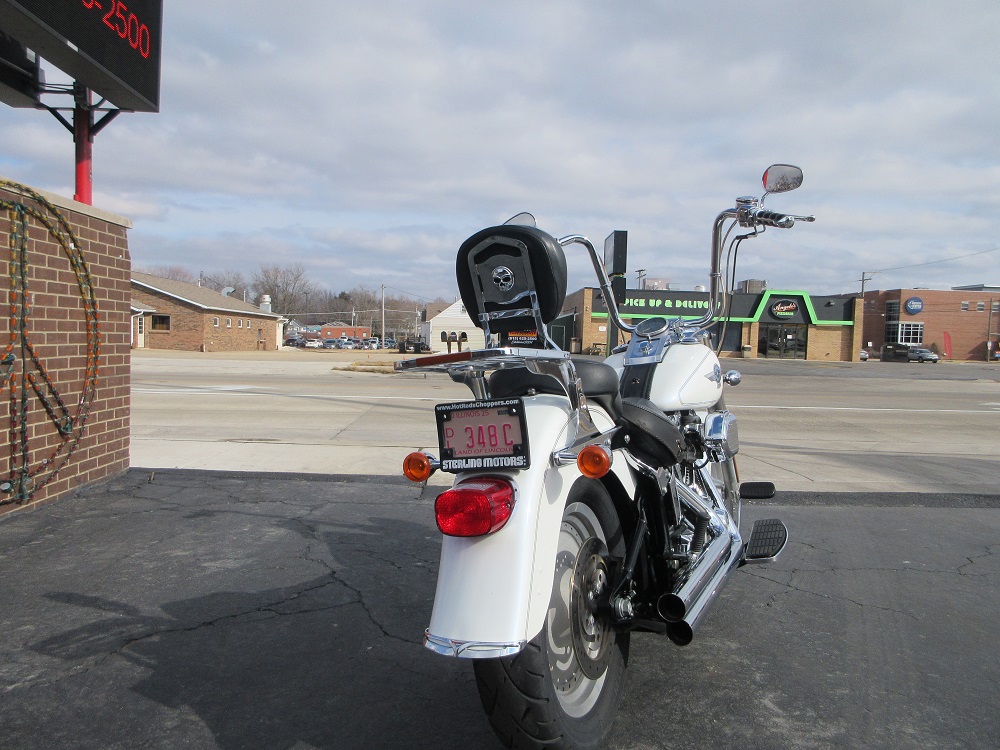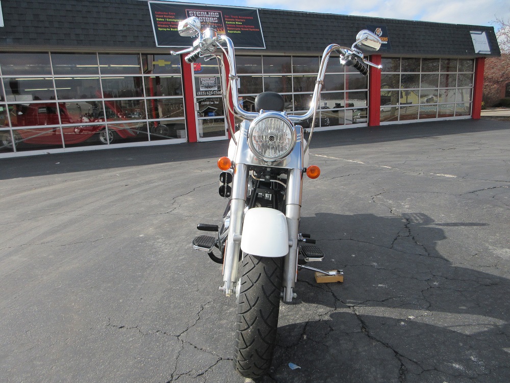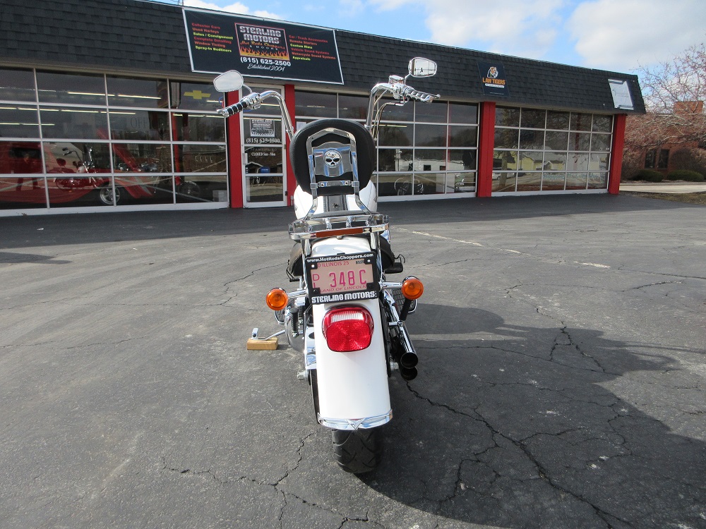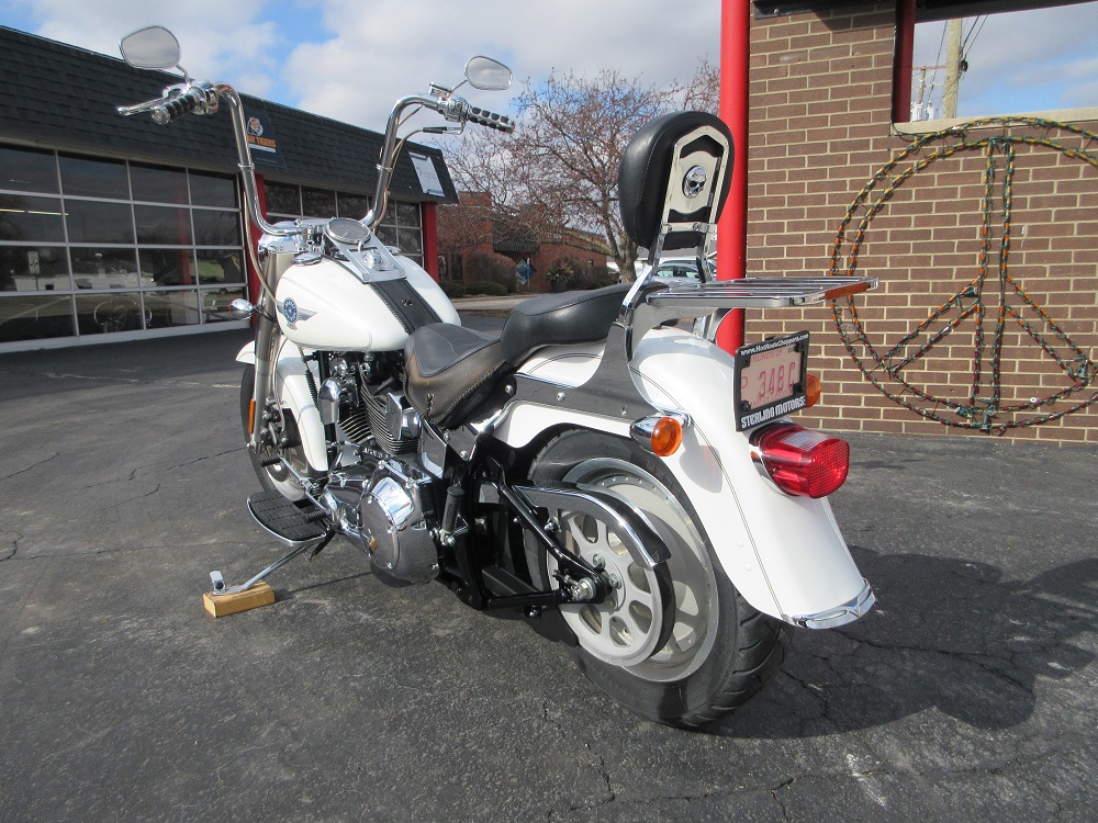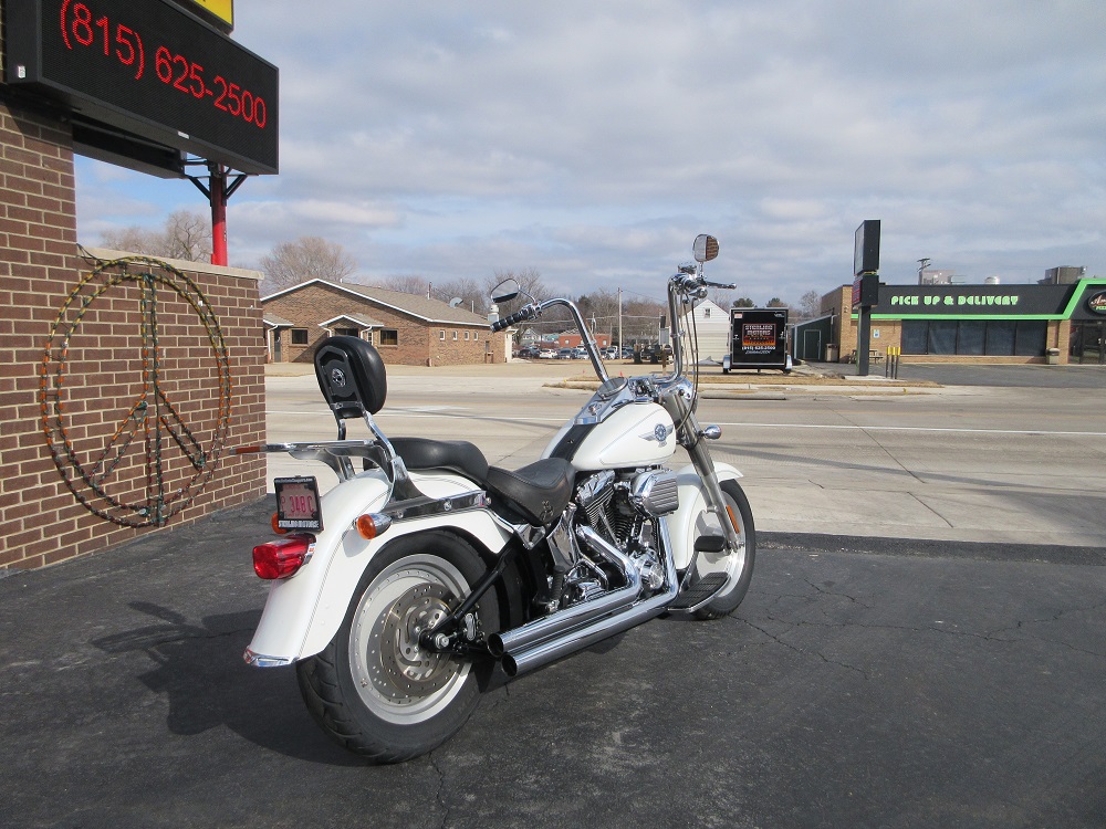 The Fat Boy is a V-twin Softail cruiser with solid disc wheels that was designed by Willie G. and Louie Nets for Harley Davidson. Prototypes were released at Daytona Bike Week in both 1988 and 1989 and it was finally put into production and released as a 1990 model. The name is derived from the fact that it is wider than most bikes when viewed head on. In 2000 a new 88” Twin Cam engine was used which required some minor changes to be made to the frame. In 2002 bullet style indicators were added. For Fat Boy’s 15th Anniversary Harley used the counterbalanced Twin Cam 88B in 2005. This particular example was optioned in Glacier White Pearl and has been upgraded with a Stage I billet air cleaner and it sounds just plain nasty ripping through its Vance & Hines Big Shots staggered exhaust. Other upgrades include the 14” ape hangers, a passenger backrest with luggage rack and nice list of chrome upgrades which include the levers, switch housings, switches, grips and a rear fender tip. It was serviced within the last 3,000 miles at which time it received a new rear tires and brakes and we just had a new front tire installed and everything works as it should. There are over a couple of thousand dollars’ worth of options on this beauty yet we have priced her as if she were bone stock so if you like what you see we suggest that you reach out before someone beats you to it!