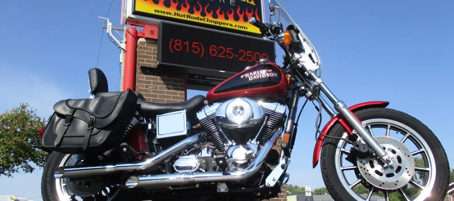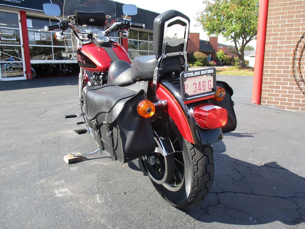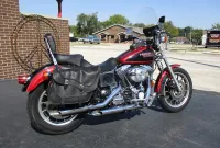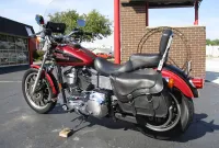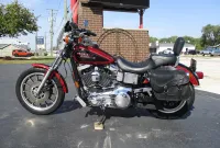 The Harley-Davidson FXS Low Rider was a classic American cruiser motorcycle that debuted in 1977. It was part of H-D’s Dyna family and was known for its distinctive styling and powerful performance. In 1993 Harley introduced the FXDL Dyna Low rider which continued through 2009. In 1999 The displacement was increased to 88” delivering more power and torque than the previous model. The bike still remained essentially unchanged in the aesthetic department, with a raked-out fork, a round headlight, a teardrop-shaped fuel tank, a one-piece dual seat with a low riding position and a chrome performance exhaust with a deep chopper note. Its suspension was fitted on a tubular steel frame and included a 39 mm telescopic fork on the front and dual side-mounted shock absorbers on the rear, offering excellent suspension performance and handling. The front end is equipped with dual disc brakes and another on the rear delivering excellent stopping power. This particular example was optioned in a gorgeous two-tone Laser Red and Vivid Black that look great together. It has been nicely upgraded with a passenger backrest, a windshield, a large windshield pouch, leather saddle bags and leather grips. Within the last 2,000 miles it received new tires, brakes and a battery. Within the last 200 miles it received new fluids and filters. The bike is very original and in amazing shape for a bike of its age. It currently has 25,345 miles and everything works as it should. Based on the current JD Power values we would appraise this bike for $8,545. We have priced it to sell quickly so don’t wait until it’s too late to contact us!
