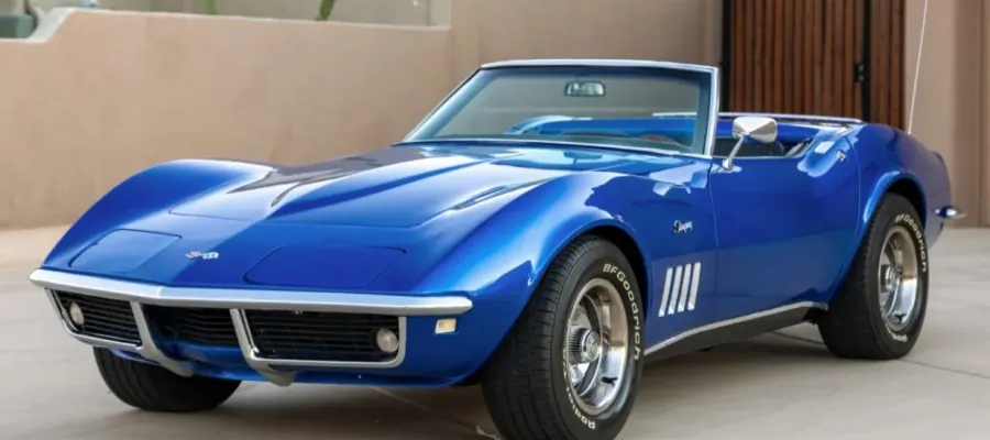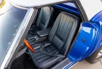 This 1968 Chevrolet Corvette convertible underwent a body-off refurbishment in 2019 . Work in 2019 to have included rebuilding the 327ci V8 with Edelbrock aluminum cylinder heads, Mahle forged pistons, a SCAT steel crankshaft, SCAT I-beam connecting rods, a Comp Cams camshaft, and roller rockers. An AutoGear Supercase four-speed manual transmission with M-22 gearing was also installed along with MSD ignition, a four-core radiator, and a custom-fabricated exhaust system with Hooker headers and MagnaFlow mufflers. The body was repainted in blue, and the four-wheel disc brakes and power steering were overhauled in addition to the suspension, which received Moog springs, Eckler’s shocks and bushings, and Vansteel components. Work under current ownership included repairing exterior imperfections, the speedometer, and the emergency brake as well as reupholstering the seats and replacing the alternator and the passenger door panel. Additional equipment includes a removable white hardtop, a black soft top, a chrome luggage rack, 15″ Rally wheels, and a Pioneer head unit and speakers.