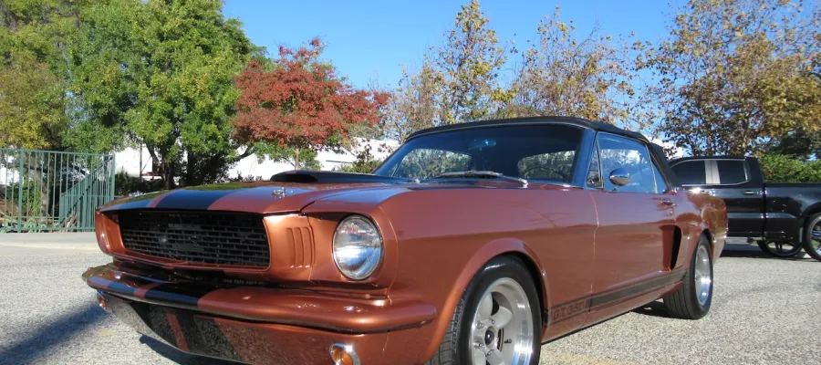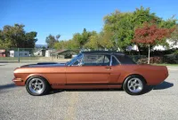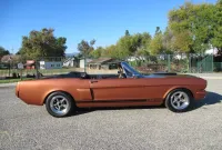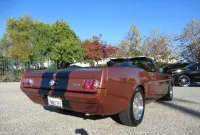 This is a great looking Classic Mustang with some tasteful and unique upgrades. With only break in miles since completion, it is ready to cruise. The custom Copper Metallic paint with Black Shelby Stripes, Shelby Bullet mirrors, hood and side scoops along with color matched bumpers really sets this one apart from the ordinary Mustang Convertibles you see out there. Under the hood sits a fresh 289 Hi Performance V8 with all new internals like, Comp cam, roller rockers, double row timing chain, Edelbrock aluminum intake, Edelbrock AVS2 4 barrel carburetor, Pertronix ignition, Chrome air cleaner, old school polished finned valve covers, JBA Headers with dual exhaust, Stainless Steel Turbo mufflers, new radiator with electric fan, upgraded Borg Warner power steering and front power disc brakes. Power gets put to the road through a Tremec 5 speed manual transmission, 8 inch rear differential with freeway friendly gears, rear traction bars, lowered springs and a cool set of 15 inch cast center America Racing wheels on all four corners to fill the wheel wells. The interior has a stock GT look with GT dash bezels and gauges, column mounted tachometer, 3 spoke wood steering wheel, Black bucket seats, chrome floor shifter, custom in dash knob style stereo and a Black folding soft top with boot cover. I am sure I missed listing some more of what was done but come by and take a look through the stack of receipts and records, you won’t be disappointed!
