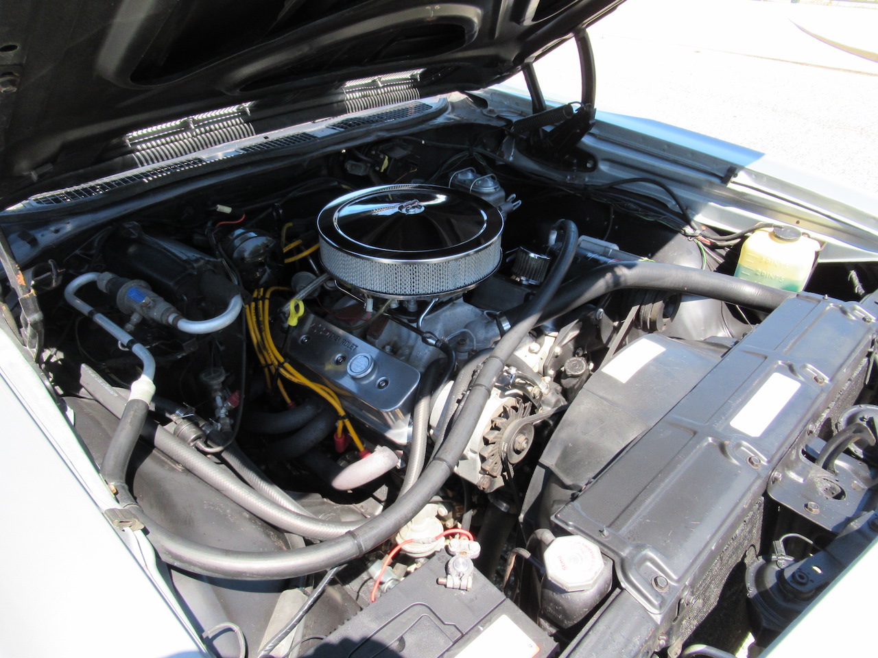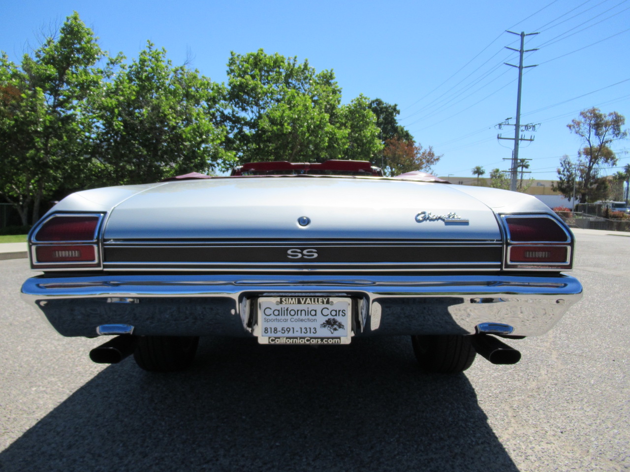 Take a look at this beautiful rare Cortez Silver Chevelle ragtop! Everyone loves a Chevelle but throw in a chance to put the top down and now your talkin. This one is fitted with the SS trim including the steel SS hood with twin grilles, SS badging throughout, black side stripes and correct style dual exhaust tips. Under the hood sits a GM Performance ZZ4 350 Crate motor rated at 355 Horsepower and 405 lbs of torque. Not bad for a factory built reliable small block! These engines have a GM aluminum intake, aluminum heads, HEI ignition, Holley 4 barrel dual feed carburetor and a nice set of chrome Chevrolet valve covers. Other options include front disc brakes, power steering, factory A/C with R134 Freon upgrade and a set of Hedman headers with dual Flowmaster mufflers for a crisp muscle car sound. Power gets laid down to the road through a Turbo 350 Automatic transmission followed by a 10 Bolt Rear differential with freeway gears spinning a set of Silver 17 inch Rev wheels to fill the wheel wells. The black vinyl power top has a glass rear window for a clear rear view and the interior is finished in the correct Dark Red vinyl with Strato Bucket seats, center console with Horseshoe shifter, factory steering wheel with tilt column, a couple of under dash gauges with a Sun Super Tach and an upgraded custom factory stereo with auxiliary cord to play music from your device. This Black plated California car runs and drives great and is ready for summer cruising!