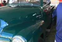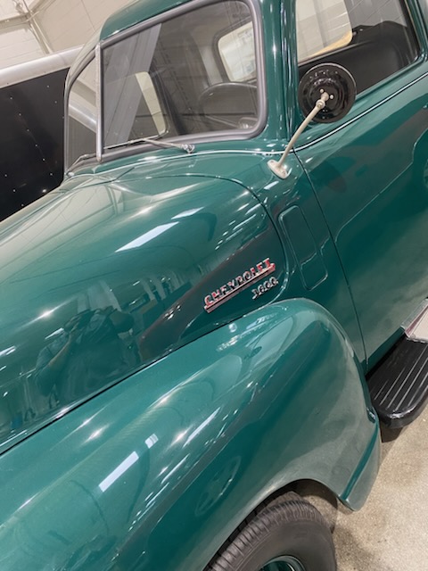 This 3600 has chrome bumpers and new wheels and hubcaps with radial tires. It's powered by its original 216ci, 6-cylinder engine with 4-speed transmission. The rear end has been upgraded to 3.73 highway gears. It also features a dealer installed hydraulic-tilt box with original wood still in the box.