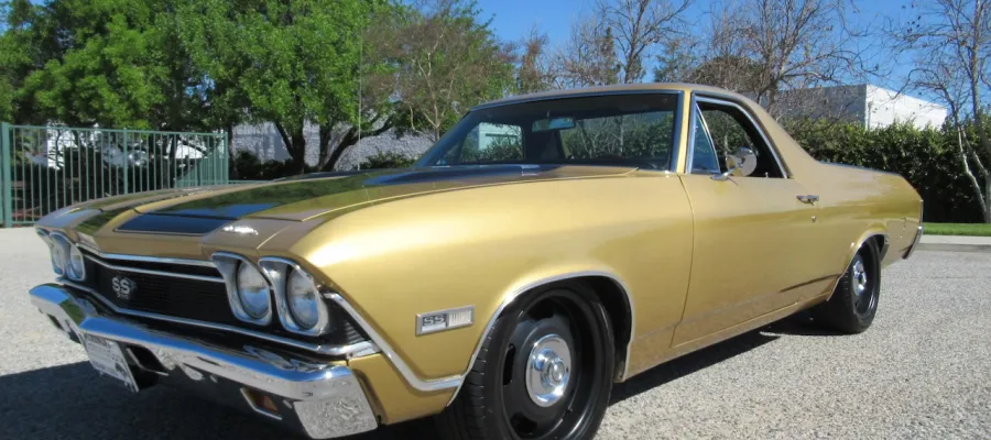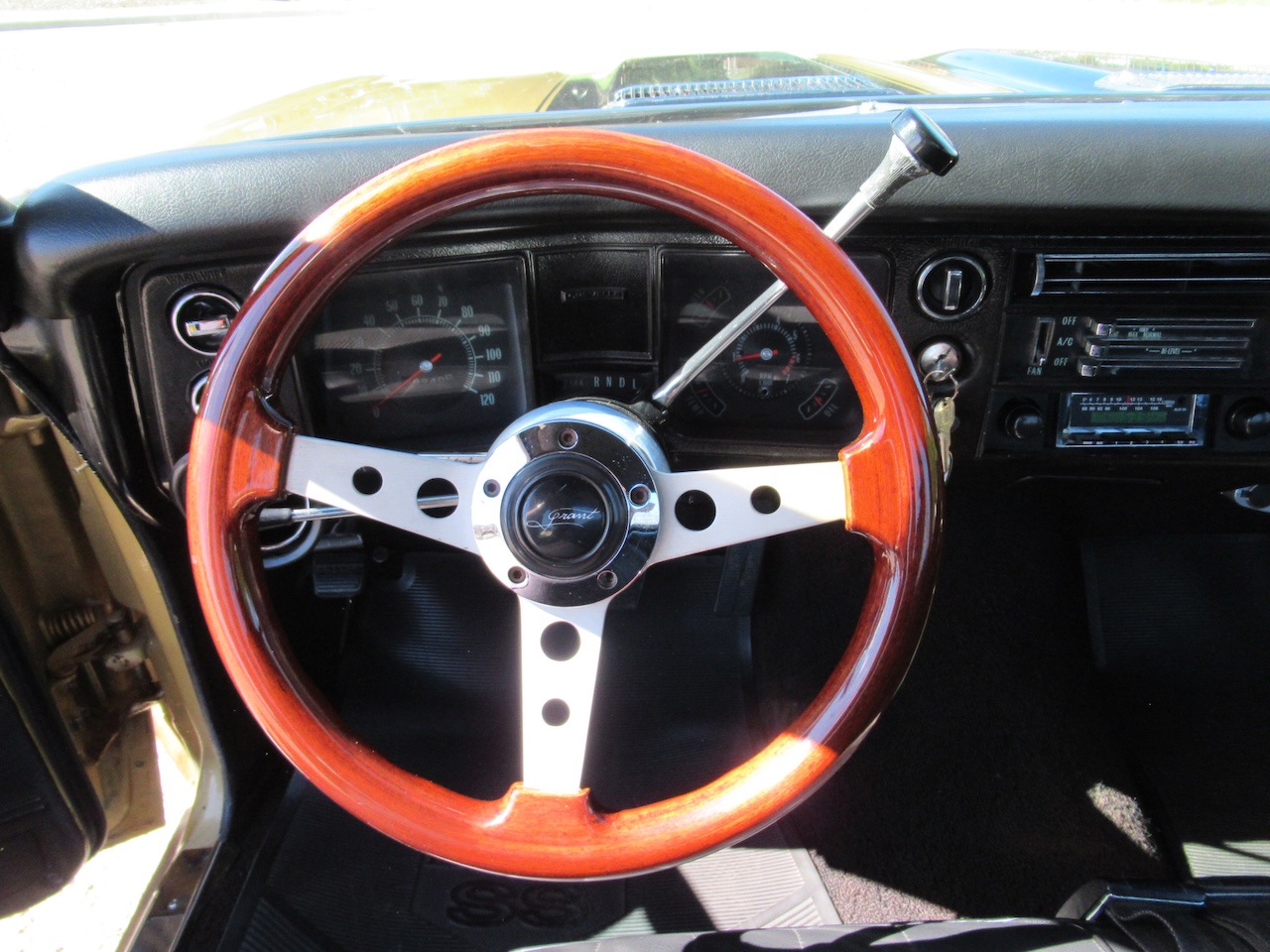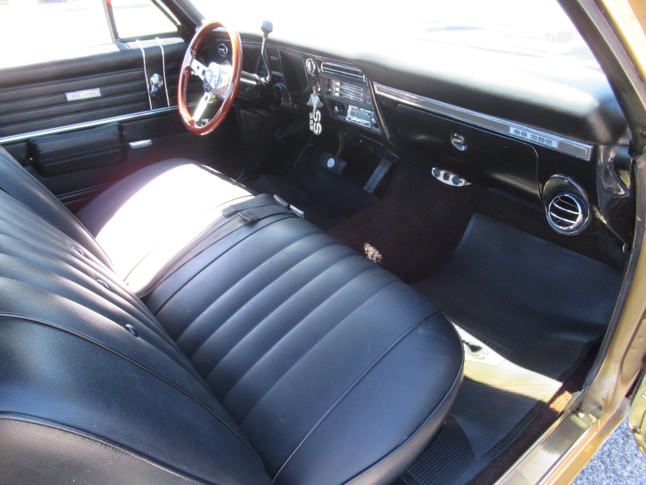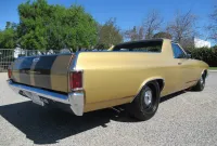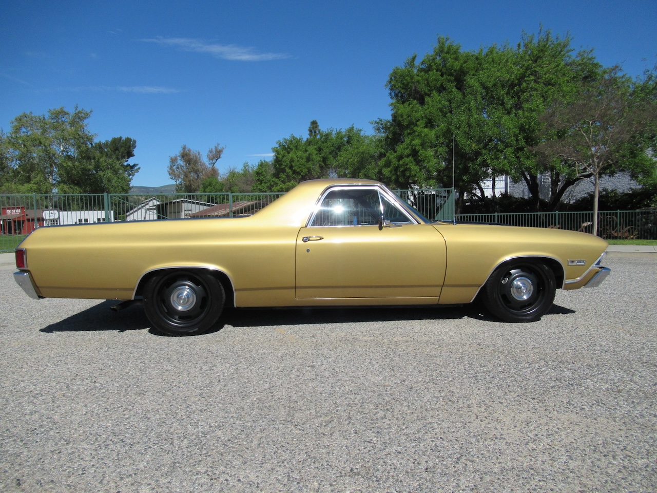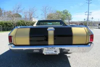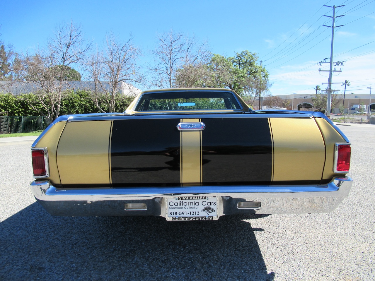 Check out this great looking real SS El Camino finished in a Copper Metallic paint with Black Stripes sitting low with a set of Black painted 17 inch American Racing Aluminum Rally wheels with some low profile tires to give it a bad boy appearance! Under the hood sits a period correct 396 V8 engine with an Edelbrock Performer intake manifold, Edelbrock 4 barrel carburetor, HEI ignition, polished Aluminum valve covers, upgraded Chrome 1 wire alternator, Aluminum radiator and dual exhaust with performance mufflers headed all the way out back for a nice deep Big Block rumble. Power gets put to the road through a 3 speed Automatic Turbo 400 transmission backed by a 12 Bolt rear differential. The interior is mostly stock with a Black vinyl bench seat, factory gauges and tachometer, custom 3 spoke steering wheel with tilt steering column and custom classic style stereo. Definitely a cool Classic Muscle car that will carry your toys in the back!