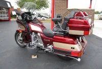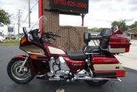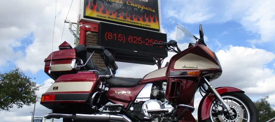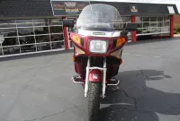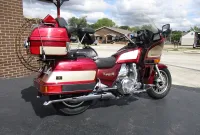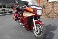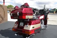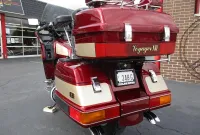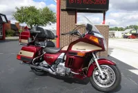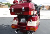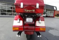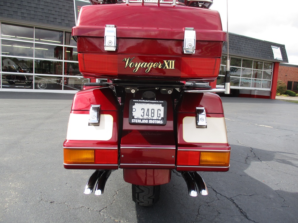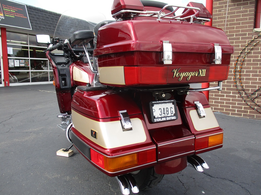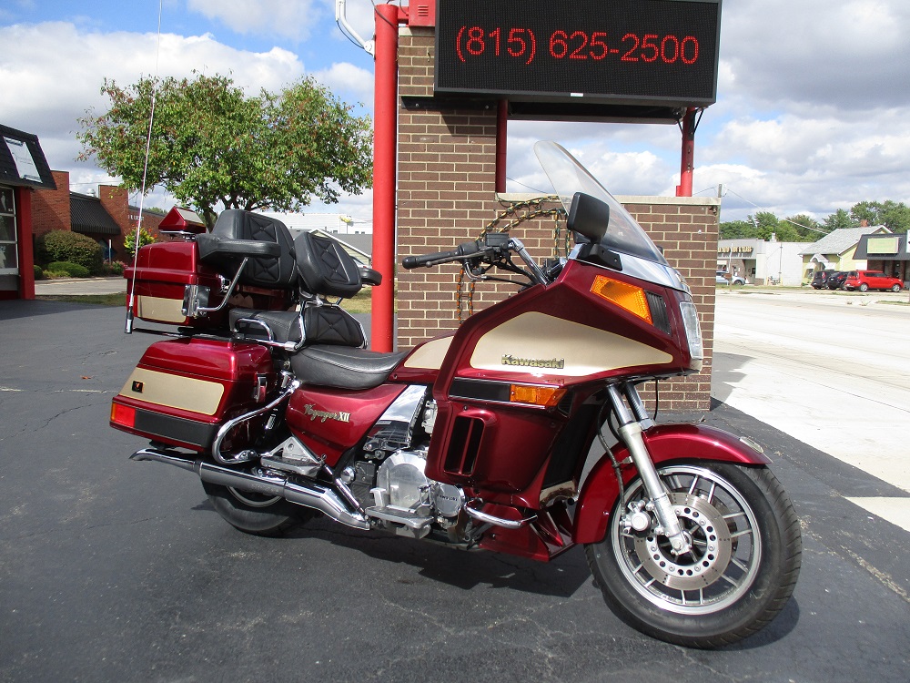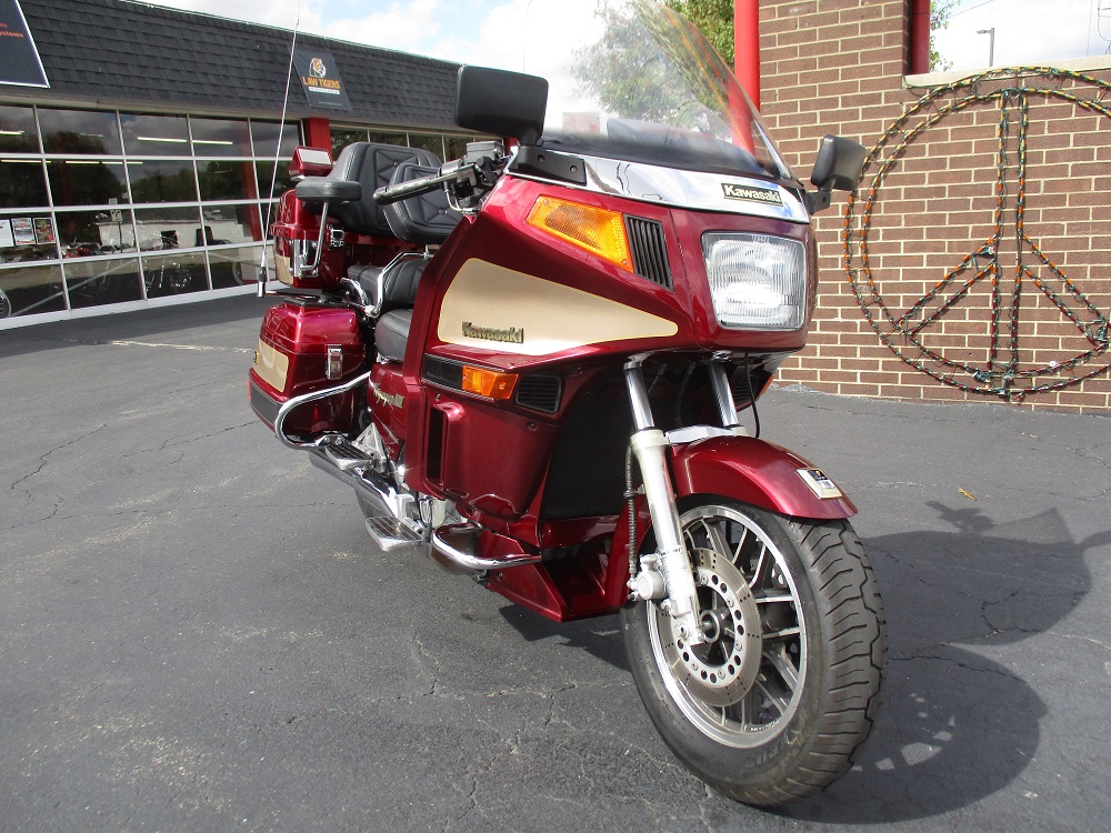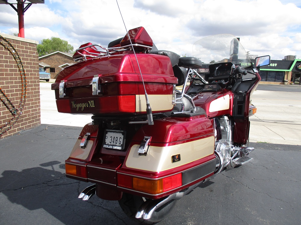 The Kawasaki Voyager debuted in 1986 as a fully dressed touring motorcycle, designed to rival Hondas Gold Wing with long-distance comfort, integrated luggage and advanced electronics. The 2001 Kawasaki Voyager XII (ZG1200) is a full-dress touring motorcycle powered by a 1,196cc liquid-cooled, inline-four engine with DOHC and four valves per cylinder. It uses a 5-speed transmission and shaft drive, has a large fairing, comfortable seating and weighs in with a wet weight of 799 lbs. This particular example was optioned in a gorgeous Vintage Red and Pearl Beige that still looks amazing. It has been nicely upgraded with a driver backrest that has a storage pouch in the rear, driver floor boards, a heel to toe shifter and it sounds amazing ripping through its true dual performance exhaust with dual tips on both sides. It was last serviced less than 1,000 miles ago at which time both tires were replaced. The previous owner was planning to change the brake pads but realized that the owner prior to him had just done it and they had too much life left to remove them. The 3 sets of new pads he was planning to install are included as well as the needed gaskets for the next service, the original toe shifter, a waterproof storage cover, the original color matched saddle bag and trunk liners with Voyager logos and the original owners manual for the bike and Clarion PK-9090V stereo system. The are few scratches here and there and there is some discoloration on the windshield but overall,