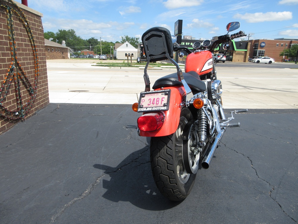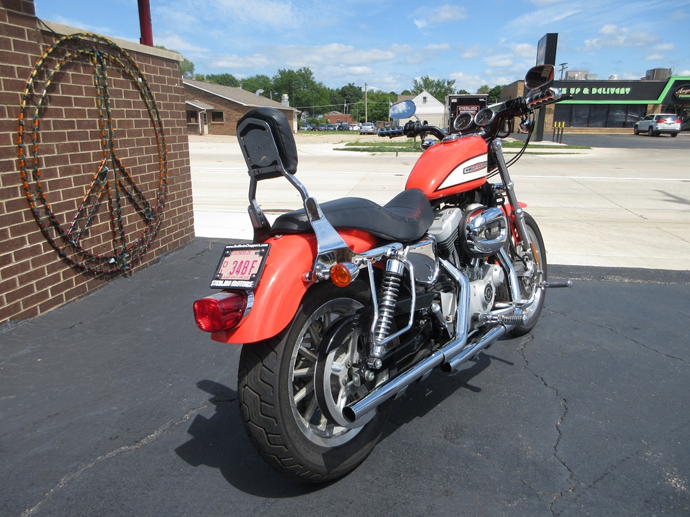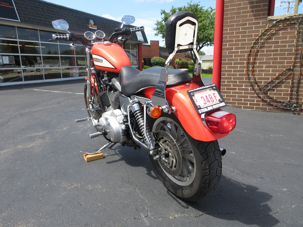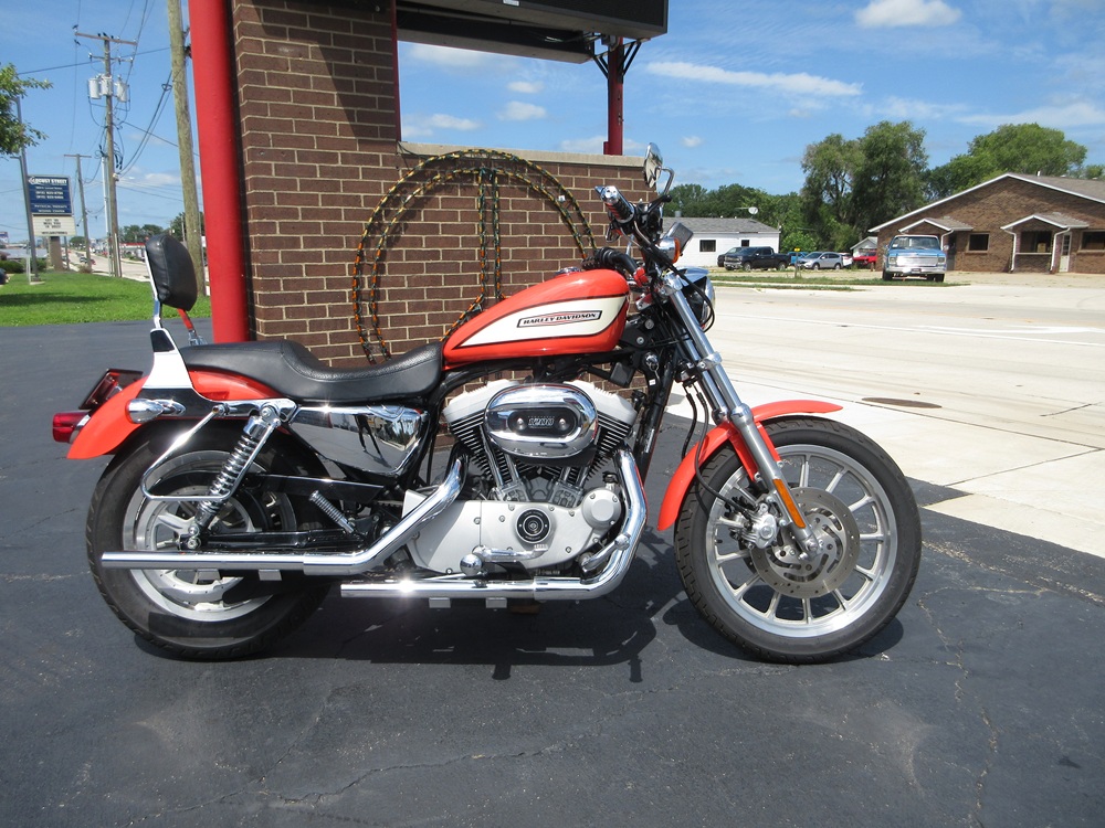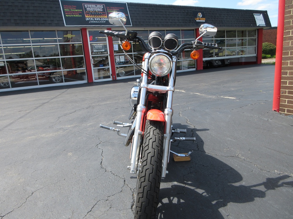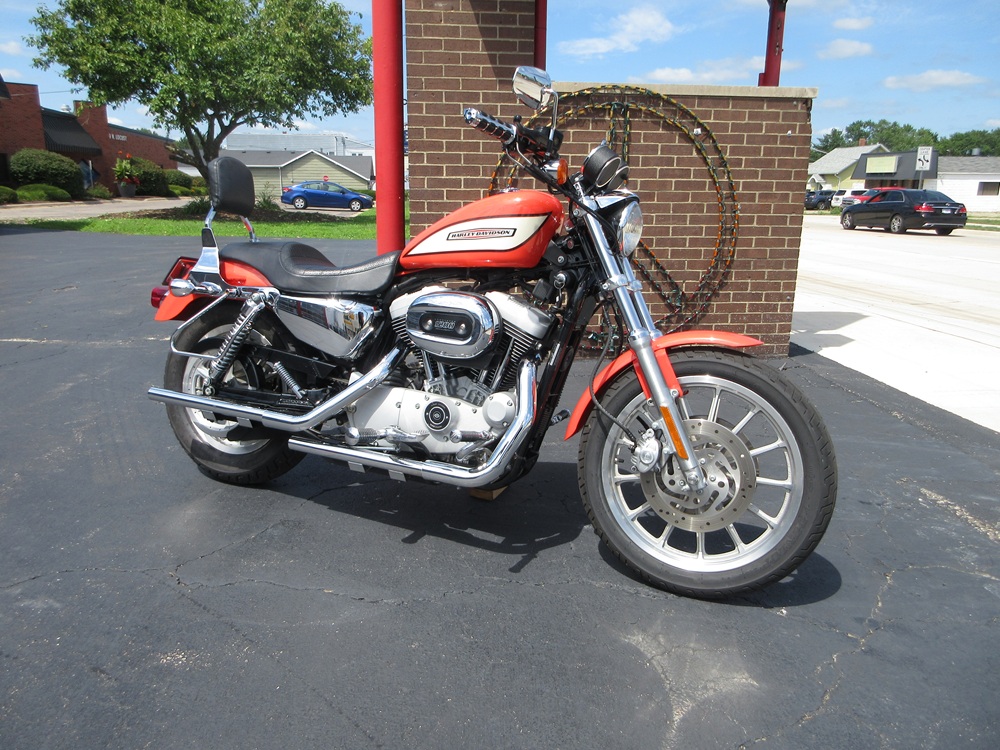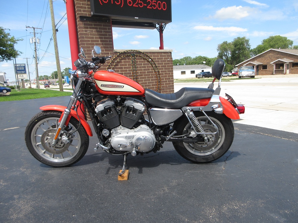 Since 1957 the Sportster has combined quick and responsive handling with a flat torque curve and unmistakable styling that make the Sportster a true American icon. The 1200R Roadster embodies a radical transformation with a redesigned powertrain that boasts high performance cams, high flow combustion chambers & ports and boasts an increased 6000 rpm redline making it a blast to ride! Other features worth mentioning are the dual front disc brakes, the tachometer and a completely redesigned fuel tank adorned with special graphics. This particular example was optioned in Racing Orange and has been accessorized with a factory security system, a quick release passenger backrest, custom driver & passenger footpegs with matching highway pegs, ISO handgrips, a Live to Ride gas cap and it sounds just plain nasty ripping through its performance exhaust system. It was just thoroughly serviced at which time it received a new battery, new tires, a new air filter, a carb kit as well as all new fluids, filters and gaskets. It is in excellent condition and only has 14,105 miles on it. We have priced it below its appraised value of $5,975 for a quick sale so if you like what you see time is of the essence!