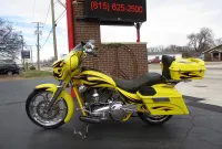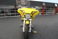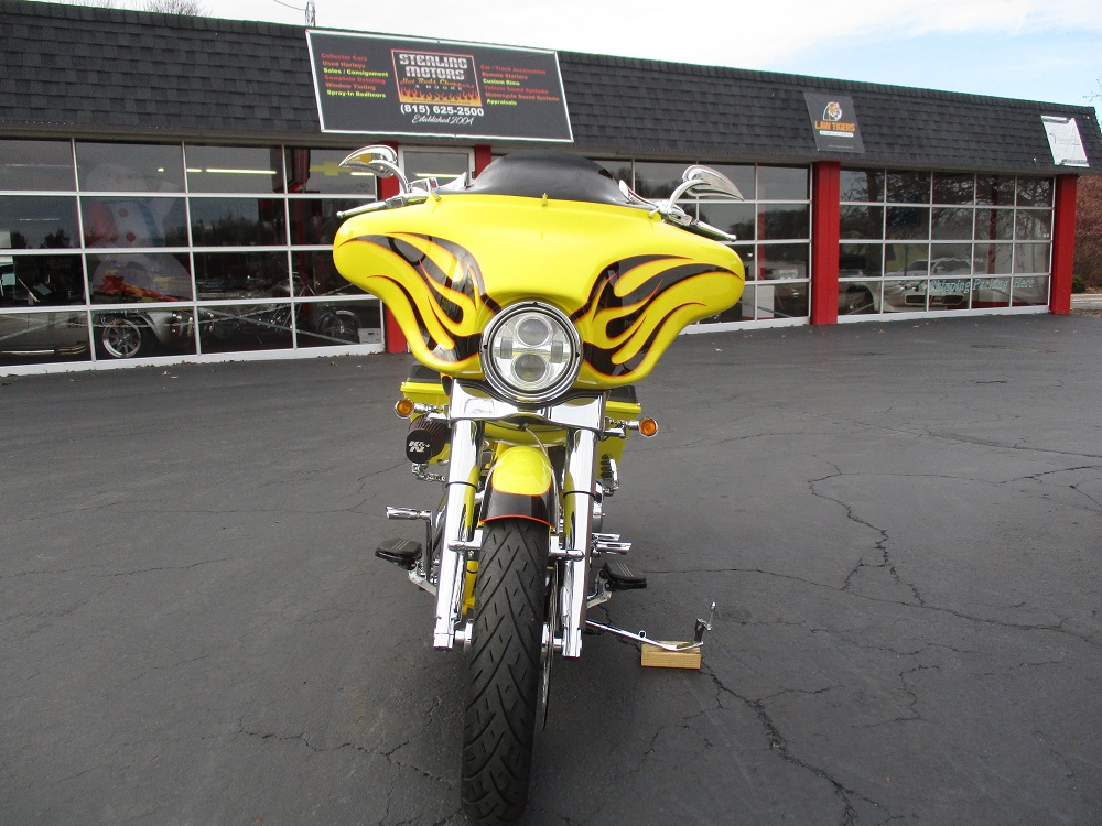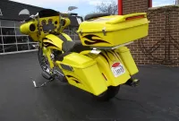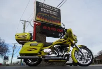 Gary Chipp, founder of Fat Baggers Inc. (FBI) and his family have been in the motorcycle industry since 1973 and a franchise Harley Davidson dealer since 1984. FBI evolved from customer requests as they were looking for a way to get more rubber under their baggers. Gary fabricated the parts needed to install a wide tire on a friend’s bagger. As soon as the bike hit the road the requests started pouring in. It soon became evident that there was a market for a new business and FBI was born. They have been the manufacturer of high end custom motorcycles and parts for over 20 years now. The Razorback features a drop seat design with a low 24” seat height, a 17” RC Components chrome rear rim sporting a 200mm rear tire, a matching 21” front rim and a 35 degree rake which is perfect for the larger front rim. It is a high end build and everything is chrome including the H-D inner primary, 6 speed transmission and the single sided front end. Arlen Ness provided a long list of parts including the mirrors, levers, pegs, pedals and more. There is a chopped tour pak with a spoiler that houses a brake / running light, a custom stitched seat with a matching passenger pad, Arnott rear air ride with upgraded chrome shocks, Dakota Digital gauges, 12” Monkey Bars and too much more to list. The heart of this machine is a Harley-Davidson 103” Twin Cam that was removed from a new 2013 FLHX with 11 miles and properly packed and stored. It was professionally installed on this bike 10 years later in June of 2023 when the bike had 25,118 miles. During the installation a leak down test was performed, it was dyno tuned and a new Sharkroad 4” 2-into-1 exhaust was installed that sounds just plain nasty. When the engine was installed it also received new bearings, a new compensator, all new gaskets, fluids and filters. It just received a complete service at 26,892 miles including all gaskets, fluids and filters. After thoroughly servicing it we installed a top of the line Diamond Audio 6 speaker 1100 watt sound system which is controlled by their new state of the art MSHD9813SG head unit that not only changes the whole look of the inner fairing but also enables the amplifier to perform at its peak to bring you heart pounding sound. Everything is in perfect working order and nothing is in need of attention. We have found similar bikes with stock H-D stereos and smaller engines being listed for $25K and up. This one has a bigger engine from a 2013 that actually only has 3,582 miles on it with a brand new $6,000 Diamond Audio competition sound system. If you like what you see we encourage you to get in touch with us a.s.a.p. as you won’t find another one like this!