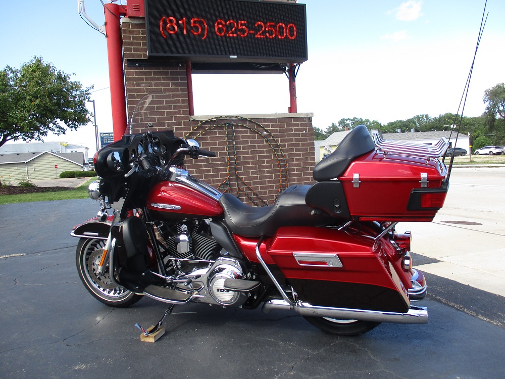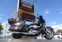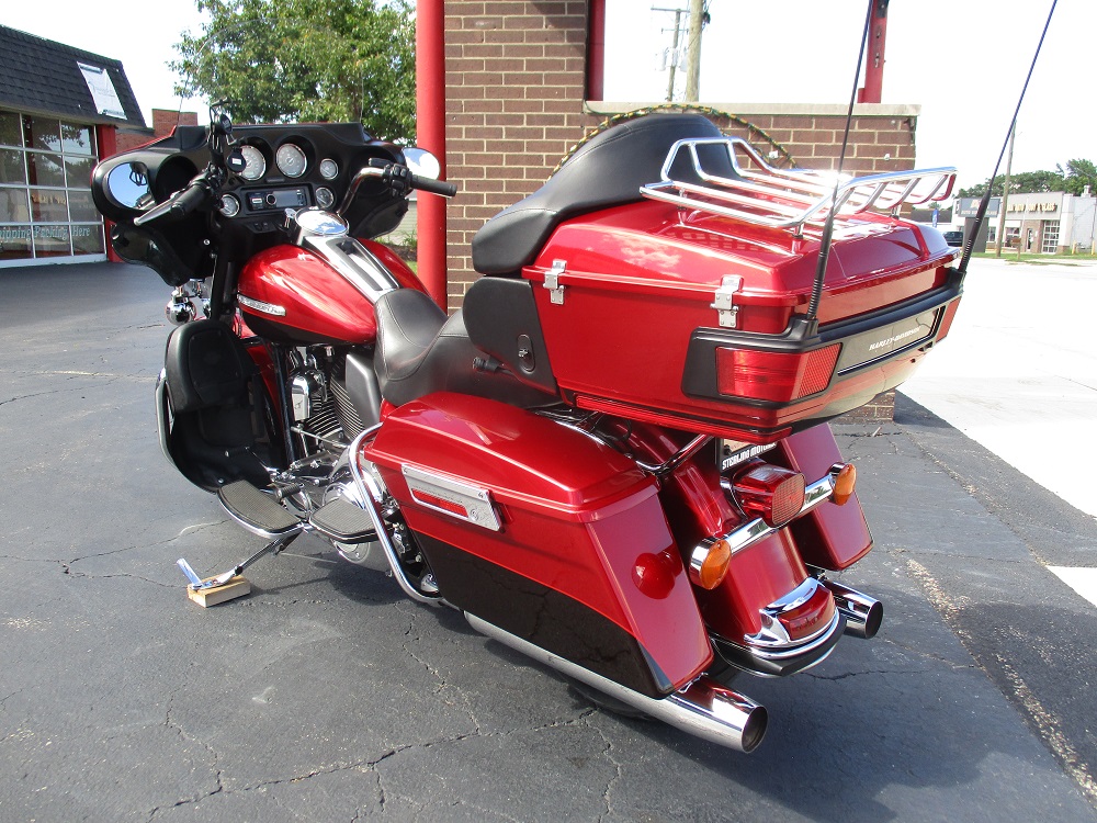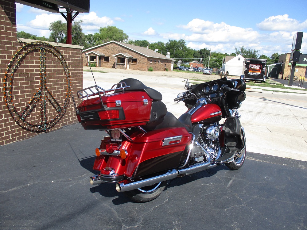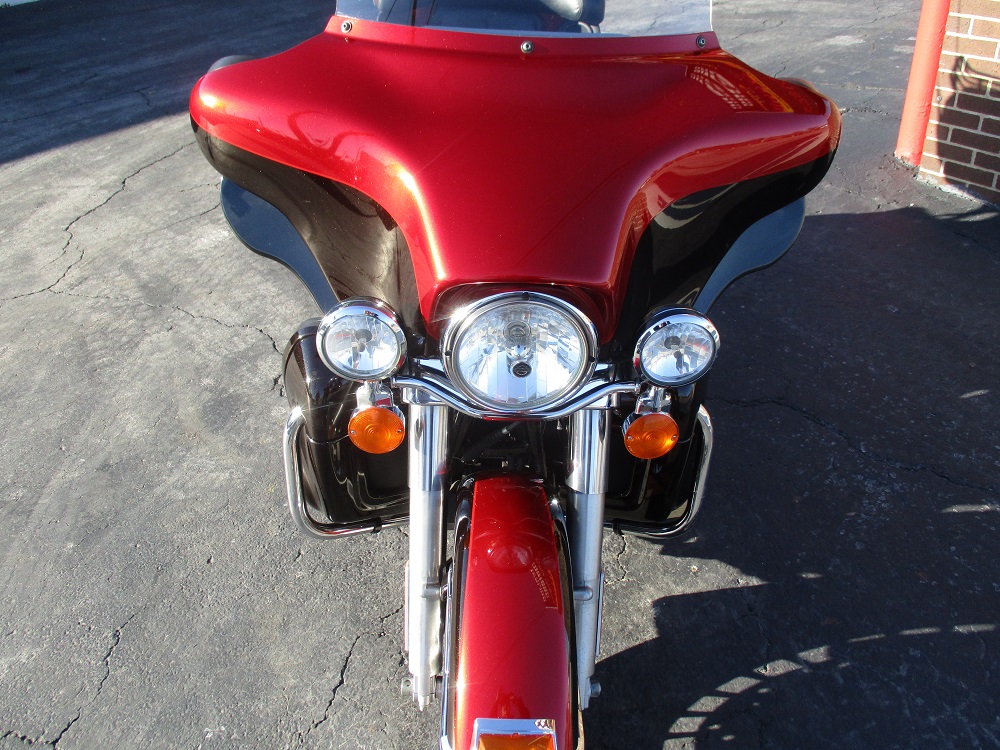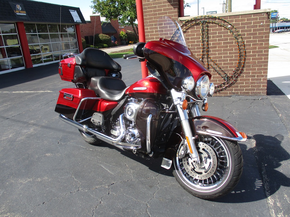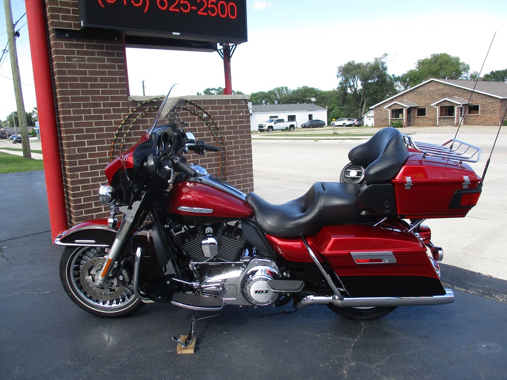 The innovative Harley-Davidson Touring chassis is based on a single spar, rigid backbone frame and a stout swing arm developed to withstand the demands of long-haul riders and today's powerful engines. The Electra Glide Ultra Limited provides the next step for those looking to stand out and upgrade their ride. Redefining the term fully loaded, the Ultra Classic Limited boasts a 1690cc Twin Cam 103” engine, ABS brakes, electronic cruise control, a Smart Security System, a premium Tour-Pak with luggage rack, heated hand grips, titanium face gauges, 28-Spoke contrast chrome wheels and special Ultra Limited badges as standard features. This particular example was finished in a gorgeous two-tone Ember Red Sunglo and Merlot Sunglo with so much flake in the paint it almost blinds you in the sun. At just under 38,000 miles it was serviced with Amsoil Synthetic fluids and filters and it also received new brakes and tires. At 32,423 miles it was serviced again with the same fluids. During this service we installed and complete sound system with a JVC BT marine head unit and a Diamond Audio HXM800.4D amp as well as HXM65 speakers up-front and HXM52 speakers fit in the tour-pak pods with custom adapter rings. The speakers are all back-lit with red LED’s so they look sweet. It currently has 34,977 miles, it was just freshly detailed and we just installed a new battery so she is ready to go. We have priced it below book value for a quick sale so if you like what you see we suggest that you contact us before someone else beats you to it!