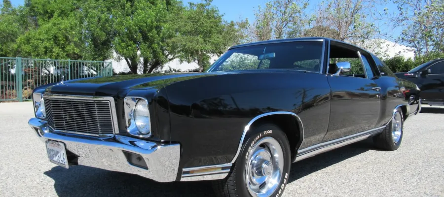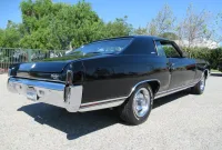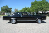 The understated Monte Carlo, even the name is cool! This Los Angeles built Sport Coupe is finished in Tuxedo Black with very nice chrome and stainless trim, dual chrome mirrors and a set of 15 inch Rally wheels wrapped in BF Goodrich raised white letter T/A radials. Under the hood sits a fresh stock 350 Crate engine with less than 2,000 miles on it including the factory 2 barrel carburetor, HEI ignition, upgraded Aluminum radiator with Aluminum overflow can, power steering, power disc brakes and dual exhaust. Power distribution goes through a turbo 350 3 speed automatic transmission followed by a 10 Bolt rear differential with a freeway friendly gear ratio. The interior consists of Black vinyl Strato Bucket headrest seats with center console, Horseshoe floor shifter, factory steering wheel, woodgrain dash accents and an upgraded Kenwood Bluetooth AM/FM CD Stereo with a tastefully trunk mounted JL Audio sub box and Alpine amp for listening to your classic tunes. This is a great driving American Classic that you don’t see on the road often these days.