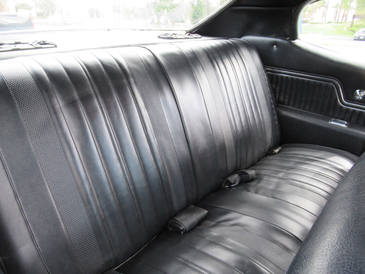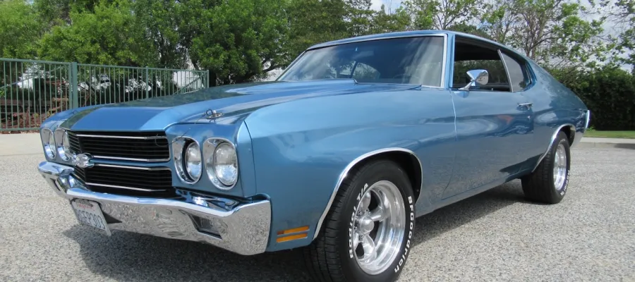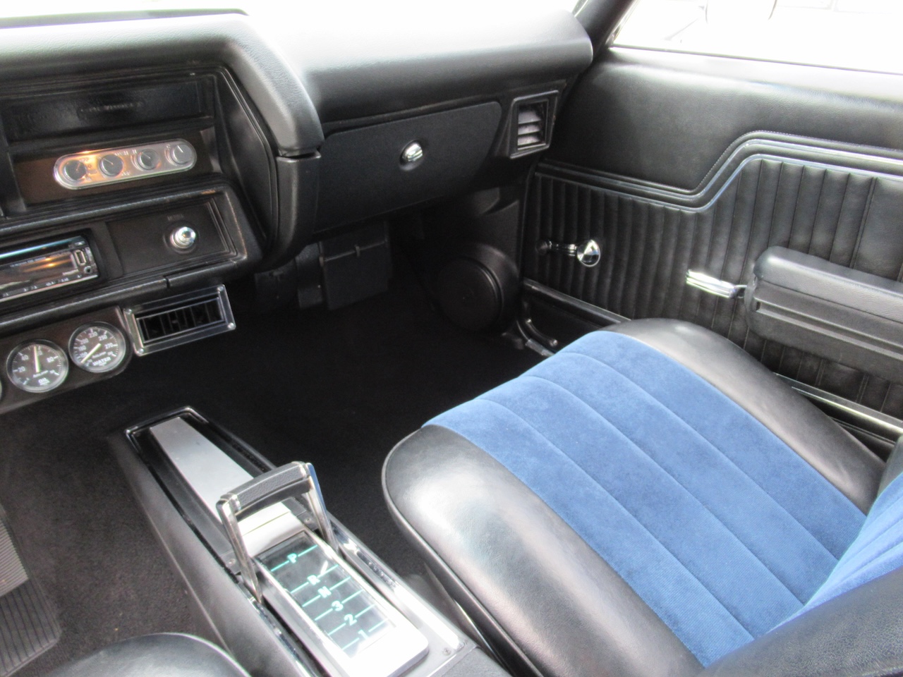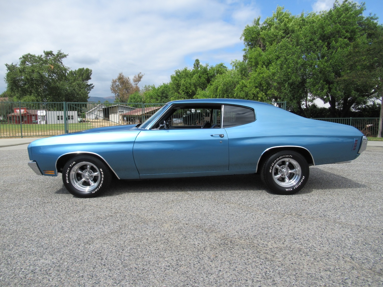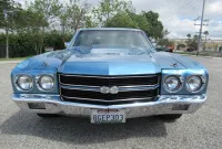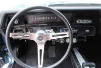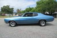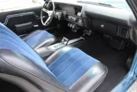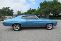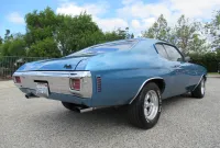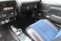 Check out this great looking Chevelle! This one is finished in Astro Blue Metallic with nice chrome and stainless trim, dual chrome mirrors, 15 inch staggered Polished American Racing wheels wrapped in new BF Goodrich T/A radials to fill up the wheel wells. Under the Cowl induction hood sits a small block 400 V8 with a 4 bolt main and options include Camel back heads, Edelbrock Aluminum intake, Edelbrock 4 barrel carburetor, Edelbrock engine dress up kit, MSD Distributor, Aluminum Radiator with dual electric fans, power steering, Hydroboost 4 wheel disc brakes, Headers with Flowmaster mufflers and dual exhaust exiting where it should. Power gets sent to the pavement through a 3 speed Turbo 350 Automatic transmission followed by a 12 Bolt Posi-Traction rear differential with a 3.55 ratio for a little added traction. The interior consist of Black vinyl bucket seats with comfortable Blue cloth inserts, center console with Horseshoe shifter, upgraded tilt steering column with 3 spoke comfort grip steering wheel, under dash 3 pack gauge set up, Alpine AM/FM CD Stereo with Auxiliary port and new Vintage A/C with upgraded 134 Freon for those hot summer days. Much cheaper than a Super Sport and just as much fun!