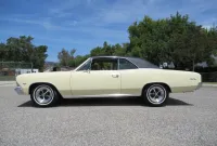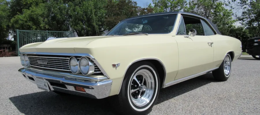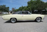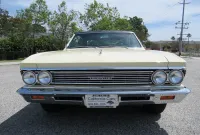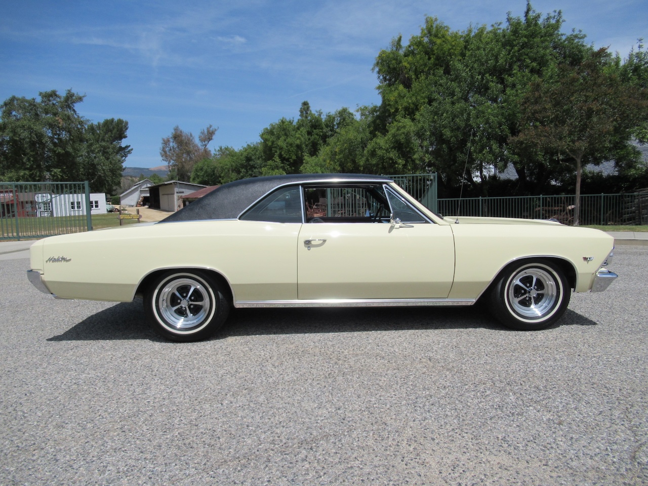 A fresh frame off restoration! Check out this beautiful Butternut Yellow 66 Malibu 2 door hardtop with only 692 miles on it since its completion. The paint and body quality is stunning and the Black vinyl top was professionally installed. All of the Chrome and stainless trim was either restored or replaced as was the weather stripping. Other exterior upgrades are Chrome dual mirrors and a set of 15 inch Magnum wheels with new white wall radials for a comfortable ride. Under the hood looks pretty original with the exception of the 350 V8 crate engine with an Edelbrock aluminum intake manifold, Chrome air cleaner and valve covers. It has factory power steering, power brakes and working factory A/C. Power gets distributed to the road through a rebuilt automatic Powerglide transmission including a new balanced drive shaft followed by a rebuilt 10 Bolt rear differential with a freeway friendly gear ratio. The Black bench seat interior is newly upholstered including new door panels, carpeting, headliner and dashboard. It still has it’s original deluxe steering wheel, factory A/C vents and controls, seat belts and upgraded Custom Auto Sound Stereo with Auxiliary input jack for your phone along with some kick panel speakers so you can crank your favorite Classic tunes. The Malibu was sold new at Courtesy Chevrolet in Los Angeles California and has it’s original owners manual with Protecto plate and still wears its original Black California license plates. This one will take you back 50 plus years as soon as you hop in the drivers seat!