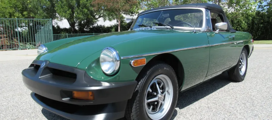 Check out this one owner Southern California time capsule! It’s not everyday that one of these comes in with every record since new and having a true MG enthusiast as it’s care taker for 45 years. This one is finished in Brooklands Green with Autumn Leaf vinyl interior per the included Heritage Certificate and original window sticker. It was professionally repainted in 2012 and still looks like brand new! The original Rostyle wheels were restored and external options include a newer Black soft top, matching Tonneau and boot cover, dual chrome mirrors and an upgraded front chin spoiler from a Limited Edition model which really adds a great look to the front end! Under the hood sits the matching number 1.8 Liter engine with just over 99k original documented miles that runs amazing and passes the difficult California emissions test without issue. The 4 speed manual transmission shifts with ease and takes you back to the feeling of driving a fun little sportscar through the winding mountain roads or up the Coast. The interior is original with it’s headrest bucket seats and still retains it’s factory steering wheel, AM/FM Cassette Stereo, seat belts and factory Smiths gauges all in working order. This California car still has it’s original personalized Blue license plates including the original selling dealers plate frames from Whittlesey Motors in Torrance California. A few extras include a few sets of keys including the originals, matching spare tire, car cover with storage bag, a few spare parts for servicing and a stack of records with brochures and advertisements from back in the day. Join the MG Club, go on some drives, take home a trophy and meet some great people!