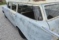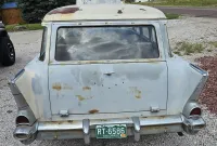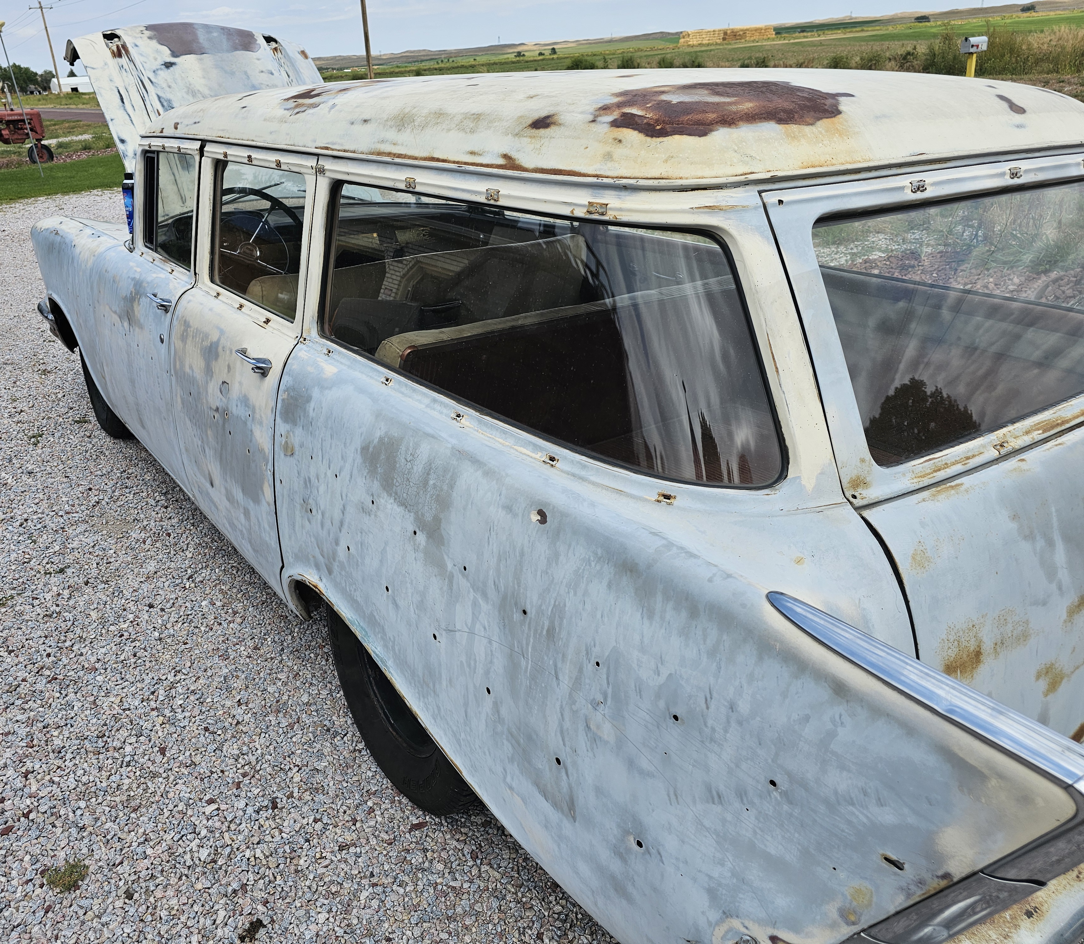For sale is a highly original 1957 Chevrolet Bel Air B210 4-door station wagon, a true Tri-Five classic with tons of potential. This unrestored survivor starts, runs, drives, and stops, with a clean 283 V8 engine (no smoke), Powerglide transmission, and dual exhaust. Always garaged and last licensed in 1982, it’s been well-preserved with very little rust, making it an excellent candidate for restoration or a driver-quality cruiser. Odometer shows 99,123 miles. Driven 4 miles on country roads since getting it running, but I recommend trailering due to needed repairs.